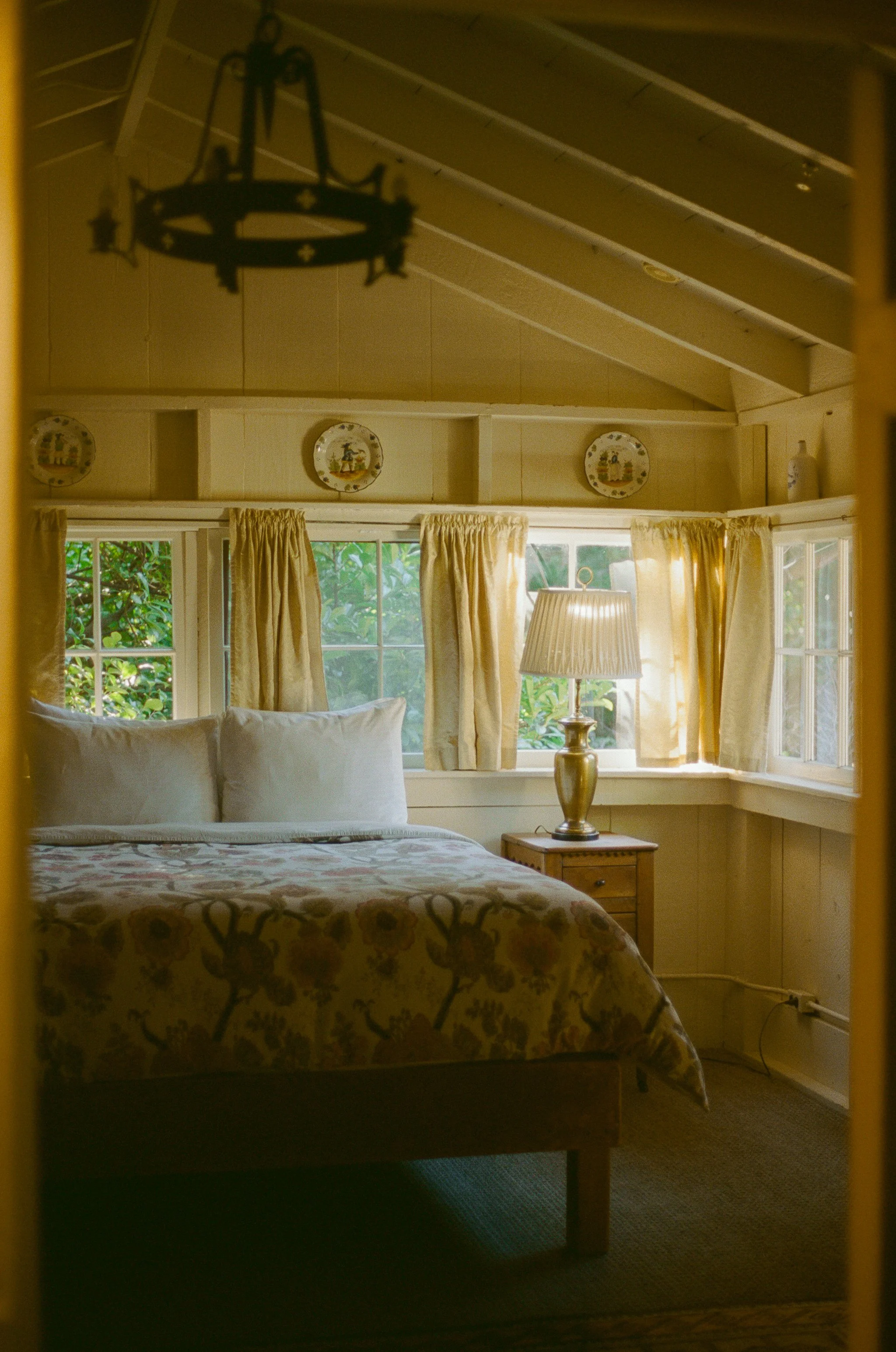 I loved watching the light dance through the curtains mid-afternoon. I loved taking a moment to think about everyone who had stayed here before me and everyone who will stay here after. There was magical energy that was palpable. One of my last evenings there, a gentle fog rolled in just before sunset and created the most beautiful conditions. The property came alive and there was a golden glow all around.